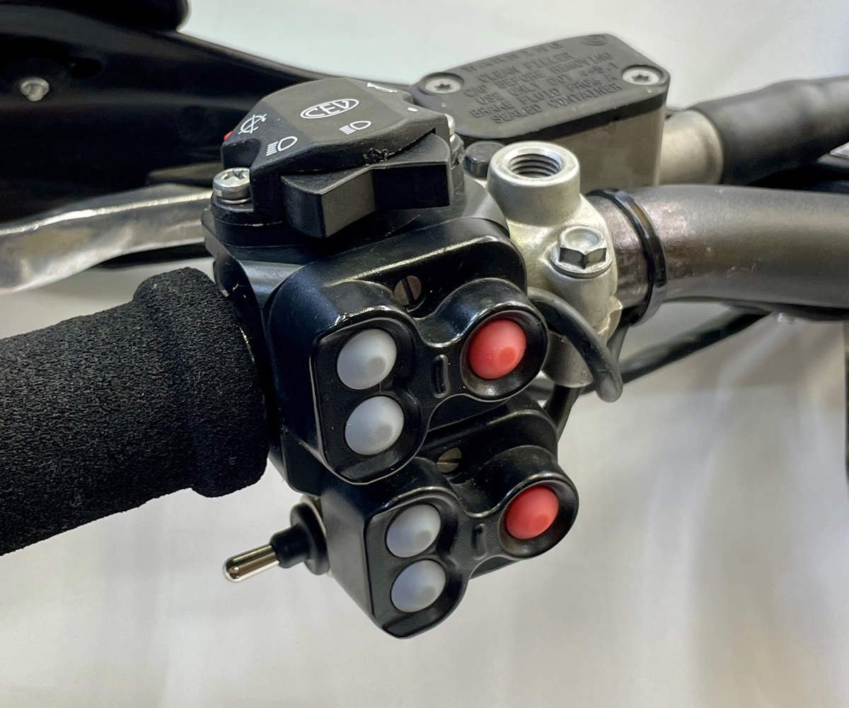 オリジナルの LPR Rally Switch の特徴であったトータルコントロールスイッチユニットの代わりに、2 つのICO コントロール スイッチを取付出来るように設計されています 。また、これまで同様にCEV ヘッドライト スイッチやウィンカースイッチを取付できるので、ハンドルバーやバイクに個別に取り付ける必要がありません。